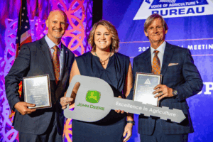 The meeting included award and recognition programs to honor outstanding young farmers and ranchers, state lawmakers and the accomplishments of county Farm Bureaus and individual volunteer leaders for their distinguished service to agriculture.